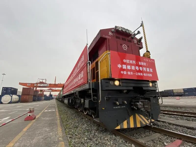 4月3日,中欧班列(渝新欧)首趟“中国邮政号”专列从重庆出发前往立陶宛。