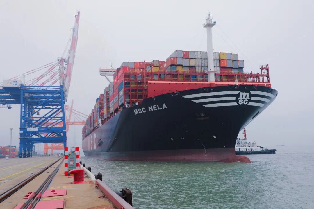 3月31日,世界最大集装箱船“地中海内拉”轮顺利靠泊福建厦门港嵩屿集装箱码头。