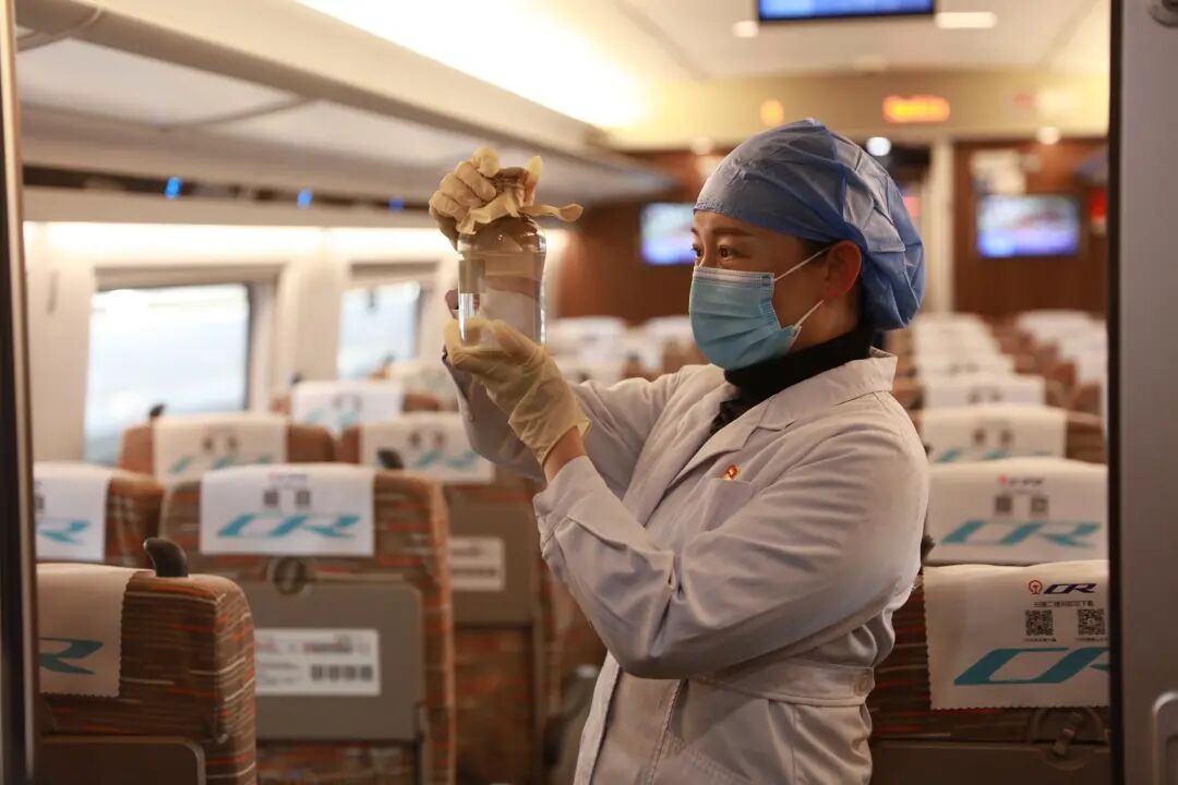 “接到紧急消毒任务,列车马上进站,大家准备出发!”4月11日,夜色如墨,从上海虹桥开往北京南的G152次列车划破黑暗,驶入北京南站。北京铁路疾病预防医学研究中心车站消毒处置组北京南站消毒处置组的值班人员接到电话后,麻利地穿戴防护装备、手拎10多公斤重的消毒桶,以最快速度奔向14站台,仅用13分钟就完成了车厢消毒工作。车厢、车站是他们每天奋战的地方。 一名网友在微信公众号上看到他们的事迹后这样留言:看到你们奔跑的速度,看到你们在战“疫”一线汗湿衣衫,看到你们脸上深深的勒痕,第一次觉得“崇高”一词如此之近。 北京疫情防控责任重大。1月23日,北京铁路医研中心在接到中国铁路北京局集团有限公司命令后,不到10分钟,36名消毒队员在众多报名者中便编组成队。北京铁路医研中心车站消毒处置组迅速成立,负责北京站、北京西站、北京南站等所有列车和车站重点部位的消毒应急工作,制订关口前移、主动上手、全员监控、重点把握的防疫工作方针。 36名消毒队员来自北京铁路医研中心的各个岗位。他们是监督科的卫生监督员、实验室的检验技师、体检中心的医生护士……战“疫”时刻,他们都是冲锋在前的勇士。 他们中,有参加过2003年非典防控、经验丰富的防疫“前辈”,有的刚当上爸爸妈妈,还有刚参加工作的“90后”。大家凭着一股不服输、不怕难的韧劲,冲锋在抗疫一线。 疫情防控初期,车站消毒处置组每天都能接到10多个来自不同车站、不同车次列车长报告“有发热旅客”的电话。每次接到这类电话,队员们就要穿着白色防护服,配齐护目镜、口罩、手套,携带消毒桶,对车厢各个角落进行无死角消毒。 “岗位就是我们的阵地。”北京铁路医研中心主任高广寒说。 49岁的张志京是北京铁路医研中心卫生监督一科的主任,在疫情期间担任车站消毒处置组组长。除夕夜,张志京的妻子早早动手,鸡鸭鱼肉、蒸烤卤煮,等待他回家团聚。然而等来的却是一通视频电话:“任务有点多,没法和你一起看春晚了。”从那一刻起,张志京始终奋战在防疫一线。 1月29日晚,张志京连续接了3个“有疑似病例”的电话通知。放下电话后,他马不停蹄地对各次列车进行消毒,连轴转了4个小时没有停歇。张志京对自己的队友说:“旅客安全高于天。越是关键时刻我们越要冲到前边,全力保障旅客安全。” 面对突如其来的疫情,从“60后”中坚骨干到平日里爱美妆的“90后”年轻人,消毒处置组的每名队员积极投身筑牢首都疫情防控阻击战的第一线。 “职责所在”是他们共同的心声。 车站消毒处置组有23名巾帼不让须眉的战“疫”女兵,占消毒队员总数的六成。 如果不是这场疫情,王铁燕从未发现自己还有这么“勇猛”的一面。娃娃脸、长马尾,说话带笑,这位46岁的燕子姐喜欢柔和地把大事小情化解掉。 “2003年非典时期,大家都在保护我们‘90后’;17年后,换我们来保护大家了。战‘疫’在一线,奋斗正当时!”“90后”姑娘韩秋谨诚挚的话语,让记者感受到了青春该有的样子。 “在儿子眼里,我是个‘超级英雄’,因为我能消灭可怕的病毒。儿子经常对家人和小伙伴说妈妈去打怪兽了,消灭了怪兽就能回来陪他。”刘昕一边拎着喷药桶走向列车,一边笑着说道。 刘昕到车站消毒处置组前,是北京铁路医研中心体检中心的前台主管护师,主要负责急救处理、每日数据统计上报、职工体检备单的发放和回收等工作。她的另一个身份是红十字急救讲师,每年都要和同事们对列车乘务员、机车司机、车站服务人员等进行红十字应急救护培训。她说:“我们体检中心主要负责北京辖区铁路职工的健康管理工作,每年要完成近8万职工的体检工作,工作量非常大,体检人数最多的一天达到600余人。体检人数多了,体检职工难免产生焦躁情绪,更需要我们在工作中耐心细致地为他们解决每一个问题。” 车站消毒处置组中有许多像刘昕一样的宝妈,由于工作繁忙无法照顾孩子,只能暂时将孩子送到父母家。听着孩子们一声声“妈妈,什么时候来接我呀”,年轻妈妈们的心在流泪,但她们深知只有舍小家,才能顾大家。 她们每天穿行于车站与列车之间,日行2万多步;每天都戴着护目镜,长时间穿着防护服,汗水凝结成水珠附着在防护面罩上,被网友称作“最美面罩姐姐”;每天长时间戴口罩,脸上出现了深深的勒痕……用行动诠释了无私奉献。 喷洒列车的下铺床底时,由于空间狭小,她们要跪下甚至趴在地上,一天要卧倒近千次……她们是女儿、是妻子、是母亲,也是疫情防控阻击战中的巾帼英雄。 北京铁路医研中心由卫生监督所、疾控中心和体检中心组成。卫生监督所主要负责对北京辖区内食品生产经营单位、公共场所、职工食堂、沿线伙食团等进行日常监督管理,还负责专运列车、大型会议的卫生保障工作。疾控中心主要负责从业人员体检、食品饮用水检测、公共场所环境检测、病媒生物防治等工作。 体检中心主要负责为北京辖区内铁路职工提供每年一次的全身体检服务,实施健康管理。此外,指导列车消杀和灭鼠、灭蟑等也是他们日常工作内容之一。疫情发生后,列车消杀成了工作的重中之重。他们加密重点大站消毒频次,每天工作近8个小时,高峰时期要对40多组列车进行消毒,常常忙到次日凌晨。 曾怡晖是一名有着丰富经验的防疫老兵。1986年,他从部队退役