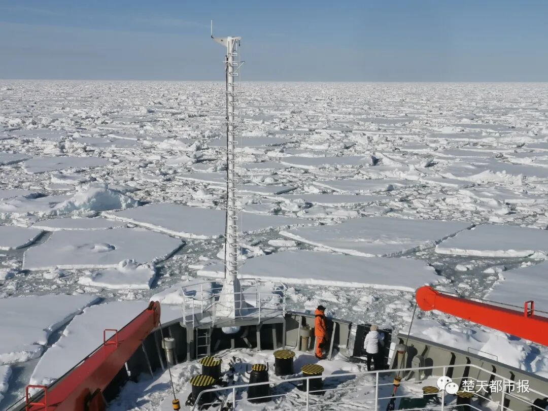 两艘船都非常平稳地穿越海冰区