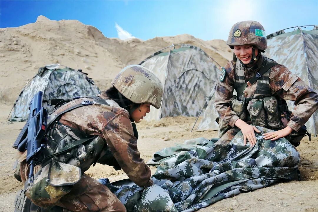 她们是第77集团军驻藏某旅的女兵,按照和男兵一样的标准参加比武考核,在完成野战生存课目后,即使辛苦,脸上仍然洋溢着自信的笑容。谁说女子不如男,奋斗的青春,让她们绽放成最美的格桑花!