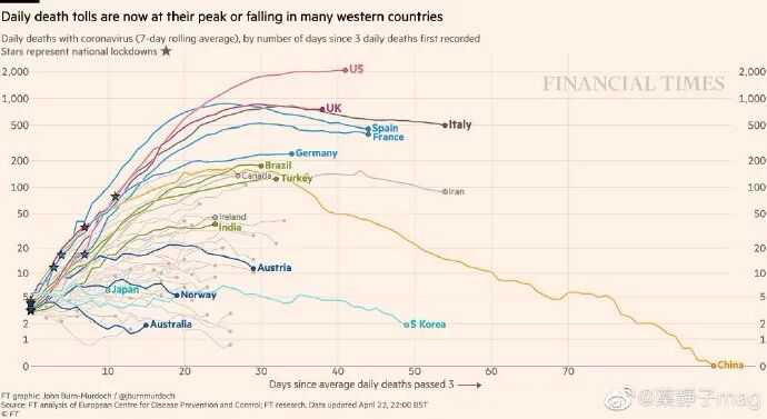 但通过Financial times 统计数据可以看到,中国在全球疫情防控领域“一骑绝尘”,死亡人数更是降为零,引一众外国网友惊呼。