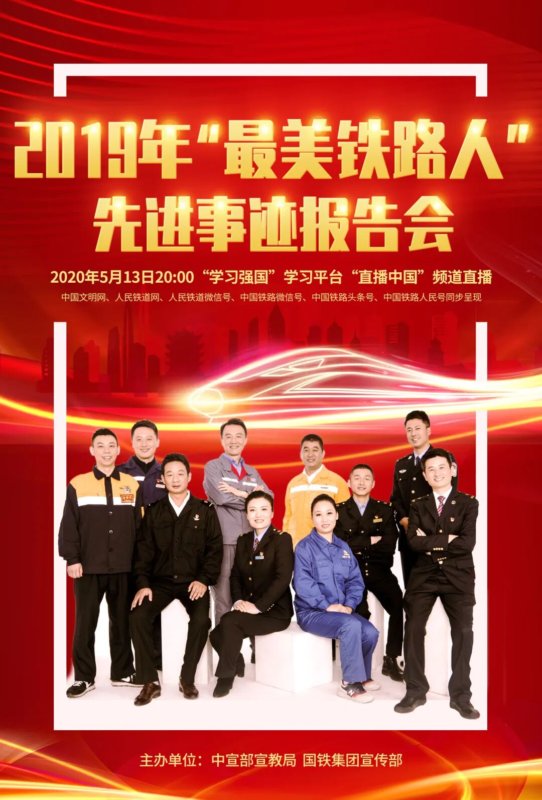 2019年“最美铁路人”先进事迹报告会由中宣部宣教局与国铁集团宣传部联合主办,将于5月13日20:00在“学习强国”学习平台“直播频道”进行直播,届时10位铁路榜样将会在线上与大家分享他们的奋斗故事,欢迎收看。