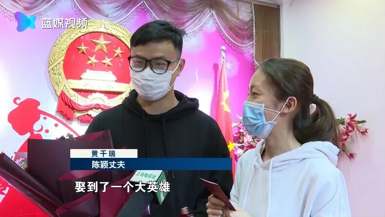 在民政局接受采访时,陈颖丈夫一脸骄傲地说:“我娶到了一个大英雄!”