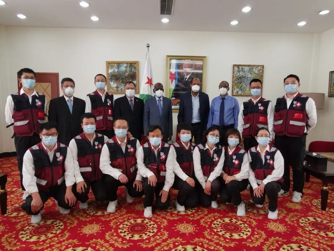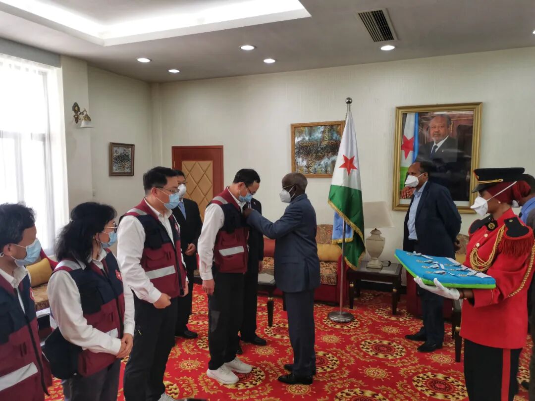 5月10日,吉布提总理卡米勒在吉布提人民宫向中国政府抗疫医疗专家组12名成员颁授“6·27独立日”国家勋章,表彰专家组为吉布提抗疫所做贡献。