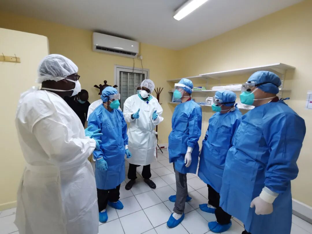 5月5日,专家组考察吉布提市巴尔巴拉区侯赛因娜检测中心,调研检测情况、流程及防护措施等。