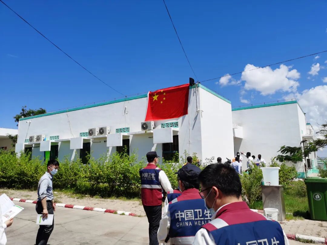 5月3日,专家组考察吉布提定点收治医院阿尔塔地区医院,同当地医护人员分享诊疗经验。为迎接中国专家组的到来,阿尔塔地区医院的大楼外挂上了五星红旗。