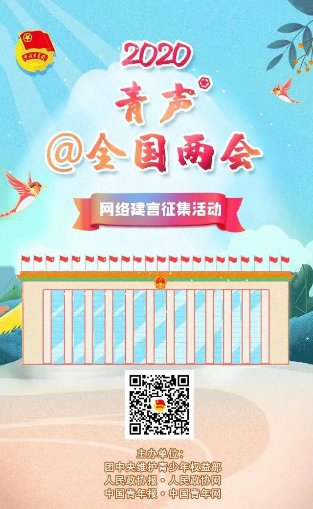 发青年之声、献青年之智、聚青春之力,快来参与2020年“青声@全国两会网络建言征集活动吧,你的每一条意见都会被认真对待。