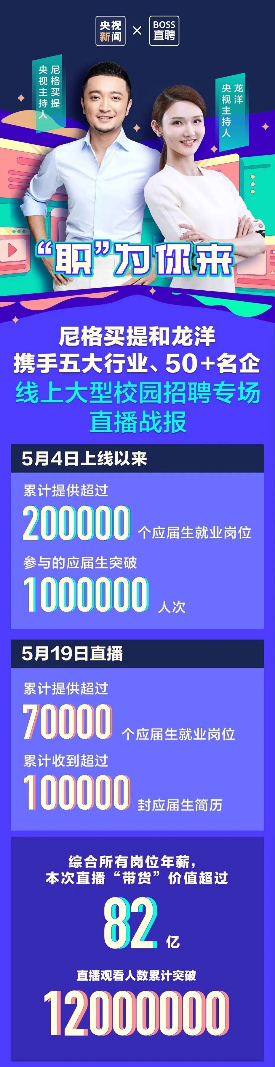 近日,央视新闻联合BOSS直聘,推出大型线上校园招聘专场直播,助力解决应届生就业岗位问题。