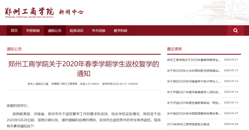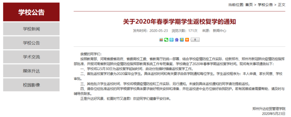 河南高校复学时间汇总表