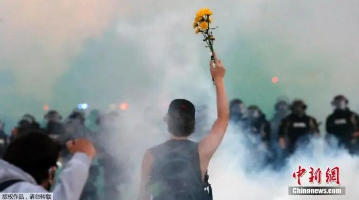 华盛顿抗议活动持续 警方发射震爆弹威慑示威者。视频来源:中新视频
