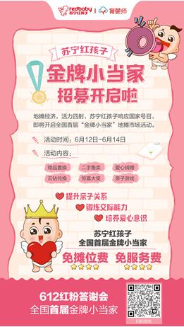 为了给宝宝们一个安全放心的“地摊市场”,苏宁红孩子开启了全国首届“金牌小当家”招募,免摊位费、免服务费同时还送神秘好礼。