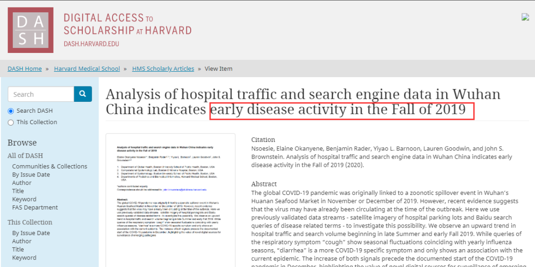 第四,论文认为是关键证据之一的、比如说咳嗽腹泻的检索量,我注意到中方有些媒体也做了一些深度的调研,就发现论文当中引述的2019年9月份对咳嗽和腹泻两个关键词的检索量,还不如2017年和2018年同期。
