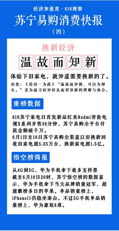今年的618大战热度空前,不仅电商平台竞争激烈,各大品牌也铆足全力。6月10日,苏宁易购发布第四期618消费快报。《快报》显示,换新经济持续走俏。