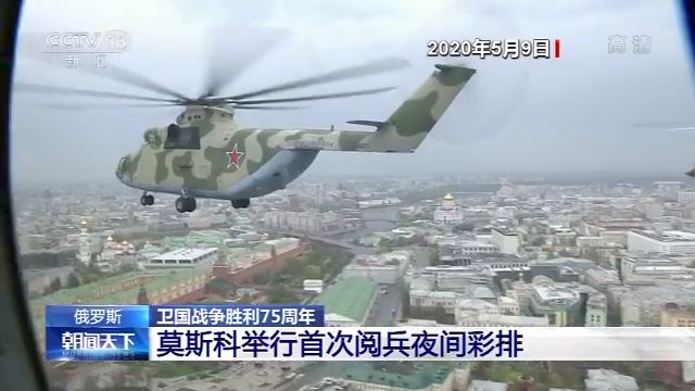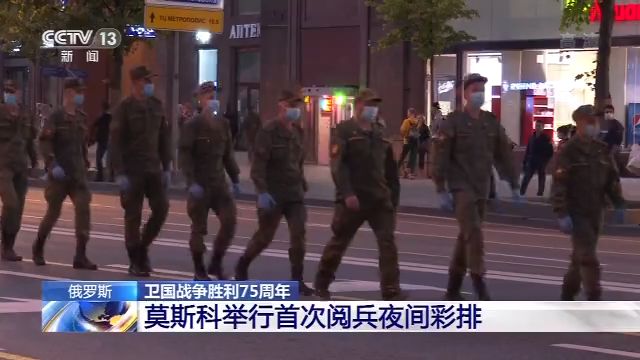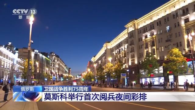总台记者顾鑫:当地时间14日21点起,莫斯科市中心著名的特维尔大街开始交通管制,纪念卫国战争胜利75周年阅兵首次夜间彩排在这里举行。