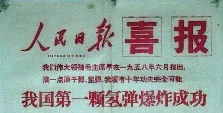 “热烈欢呼我国第一颗氢弹爆炸成功”宣传画 (作者系军史专家) 中国军网微信(zgjw_81)出品 作者:徐平 编辑:柴潇 编审:刘兴 投稿邮箱:zgjwwx@81.cn 转载请注明来源中国军网微信