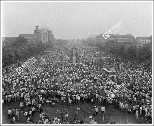 成都市群众在街头集会,热烈祝贺我国第一颗氢弹爆炸成功