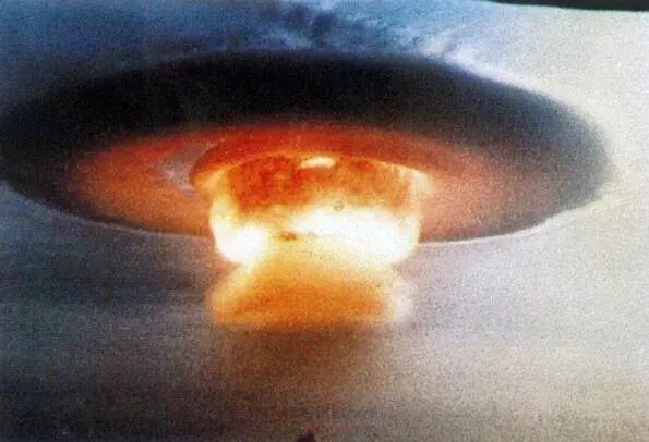 中国第一颗氢弹爆炸后开始升起蘑菇云