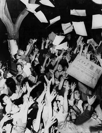 我国氢弹爆炸成功以后,北京市民抢阅人民日报喜报