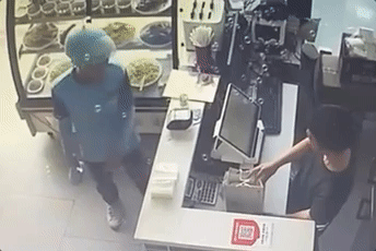 一位外卖小哥为了保住自己的餐盒