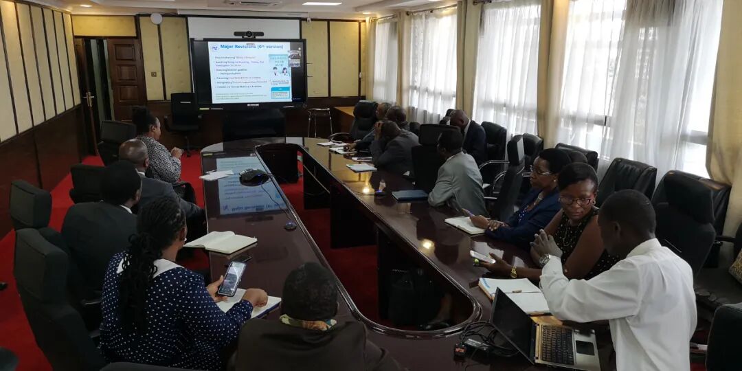 ▲3月18日,在肯尼亚首都内罗毕,肯尼亚卫生部官员和专家在卫生部参加视频会议。新华社发(中国驻肯尼亚大使馆供图)