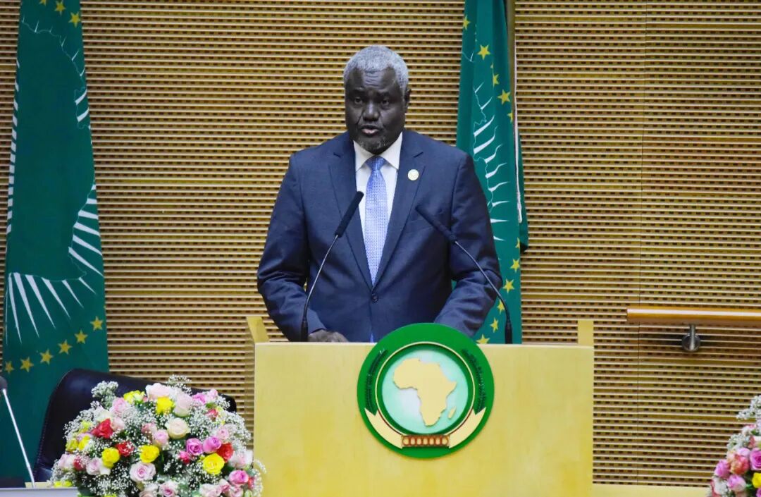 ▲2月9日,在埃塞俄比亚亚的斯亚贝巴,非盟委员会主席法基在非盟首脑会议上发言。新华社发(迈克尔摄)