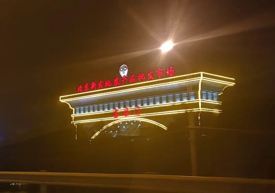 夜色笼罩下的北京新发地农产品批发市场。作者供图