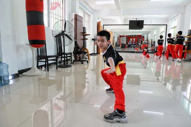 “哈!嘿!……”阵阵清脆整齐的童声传来,这是孩子们在练拳的声音。