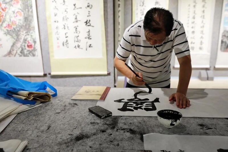 书法爱好者正在进行书法作品创作。求是记者张芯蕊 摄