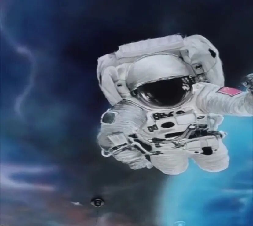 山西忻州小学美术老师赵文瑞利用暑假花了20多天的时间,将科技教室的天花板上画满星空,作为学生的开学礼物。