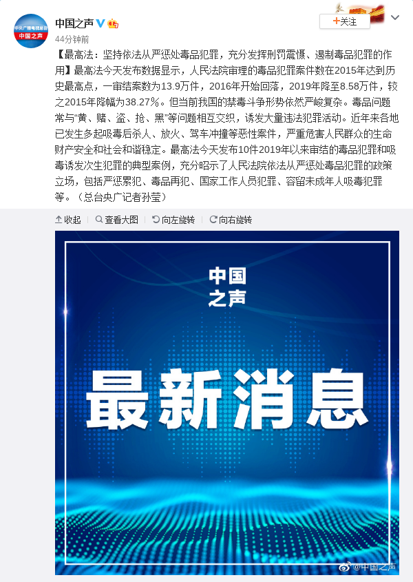 最高法:坚持依法从严惩处毒品犯罪,充分发挥刑罚震慑、遏制毒品犯罪的作用