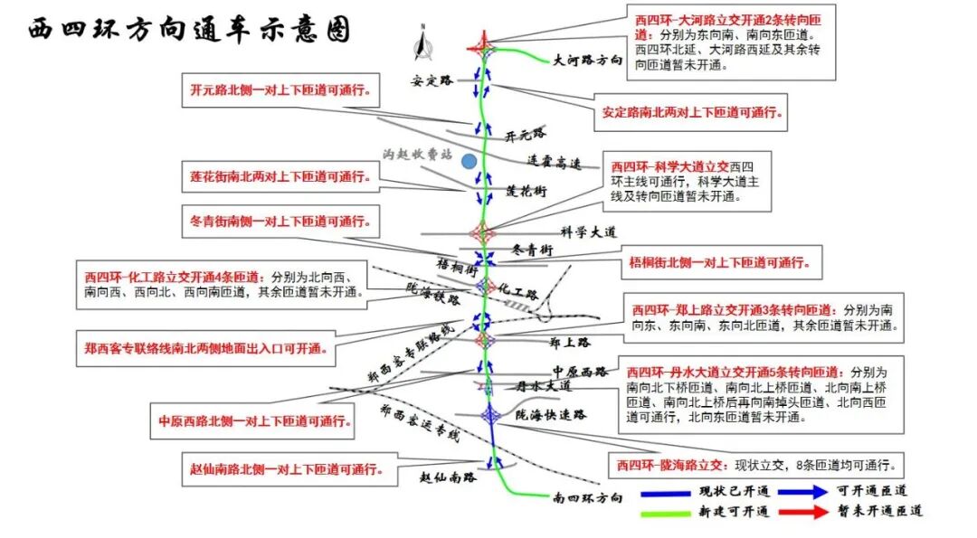 今日,记者从四环建设指挥部最新了解到,明天上午9点,除南四环金岱路-经南八路段外,四环线及大河路快速化工程高架主线进行试通车。郑州也将进入“双环+井字”的快速路网时代。
