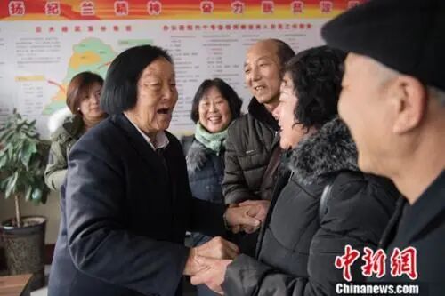 资料图:2019年1月8日,山西省平顺县西沟村,申纪兰在办公室与来访民众交谈。中新社记者 韦亮 摄