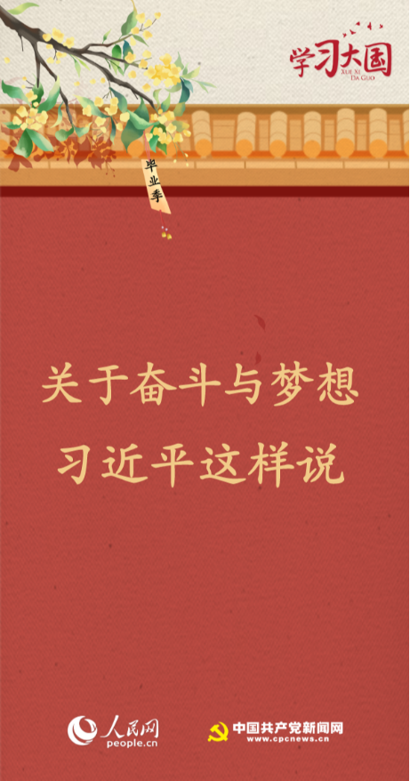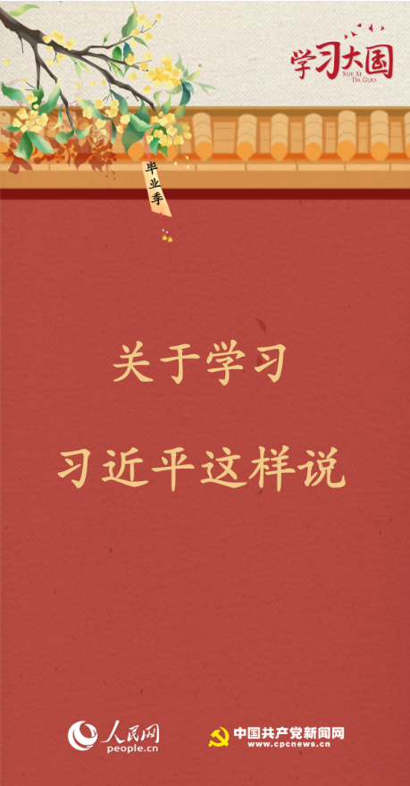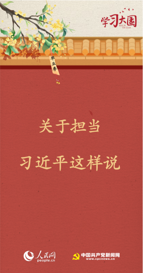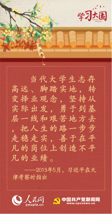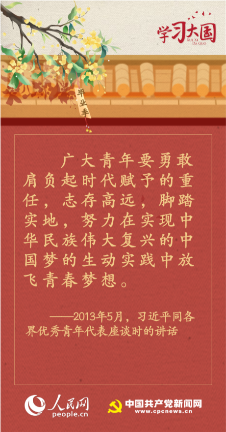 人民网·中国共产党新闻网梳理了习近平曾勉励过青年一代的箴言,供即将进入社会的毕业生们品读。愿这些平实、温暖而又充满力量的话语,能够指引你们坚定前行。