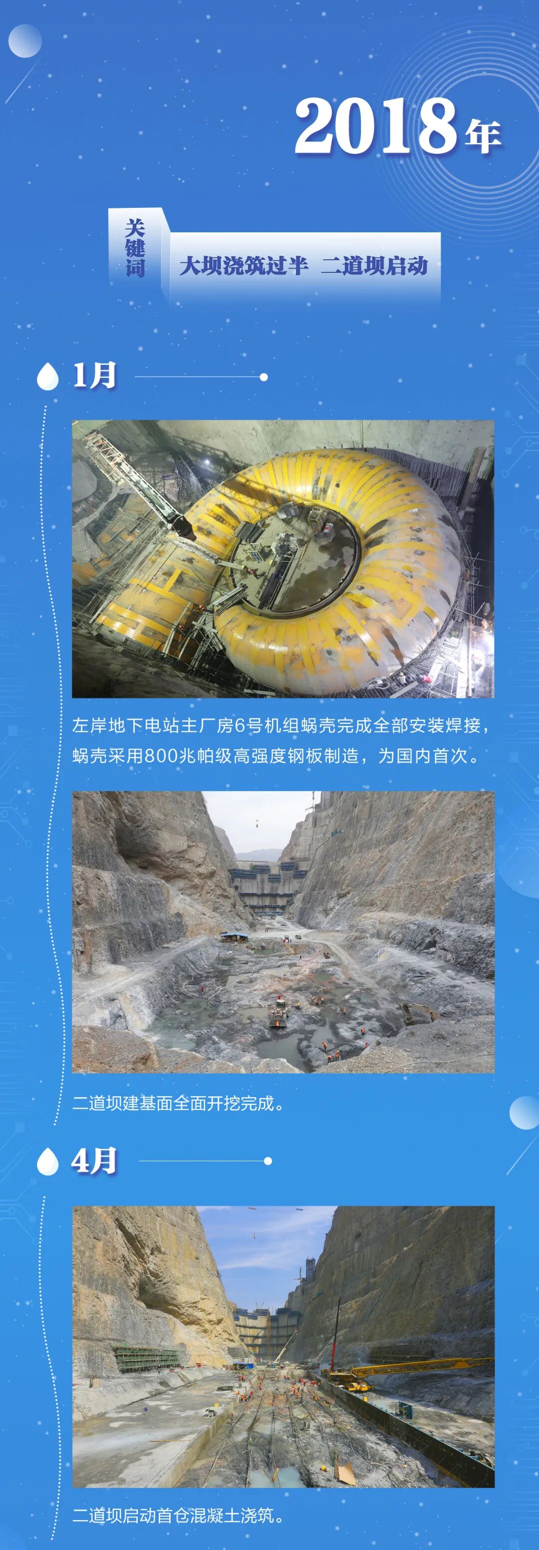 工程中首次运用了全坝段低热水泥施工技术,并创新采用了液压自升式爬模、智能通水、智能灌浆、智能振捣等一系列自主创新的智能化成果,克服了国内外水电建设中“无坝不裂”的顽症,有效实现大坝工程安全优质高效建设和全生命期价值创造目标,使拱坝智能建造系统迈进2.0时代。