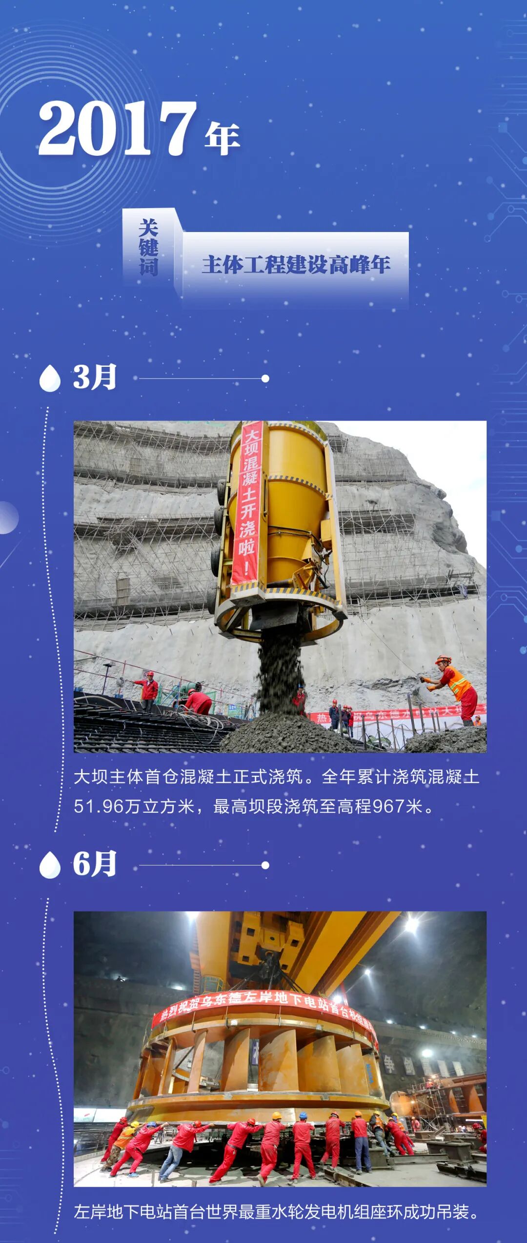 黄 色 灰 色 黑 色 乌东德水电站 一条时间轴 见证乌东德 一起来看乌东德水电站 如何创造“高峡平湖”奇迹 巍巍青山见证央企精品工程 滔滔江水涵养生态造福人民 乌东德水电站 又一座历史丰碑在金沙江畔傲然矗立 功在当代筑精品,利在千秋惠民生