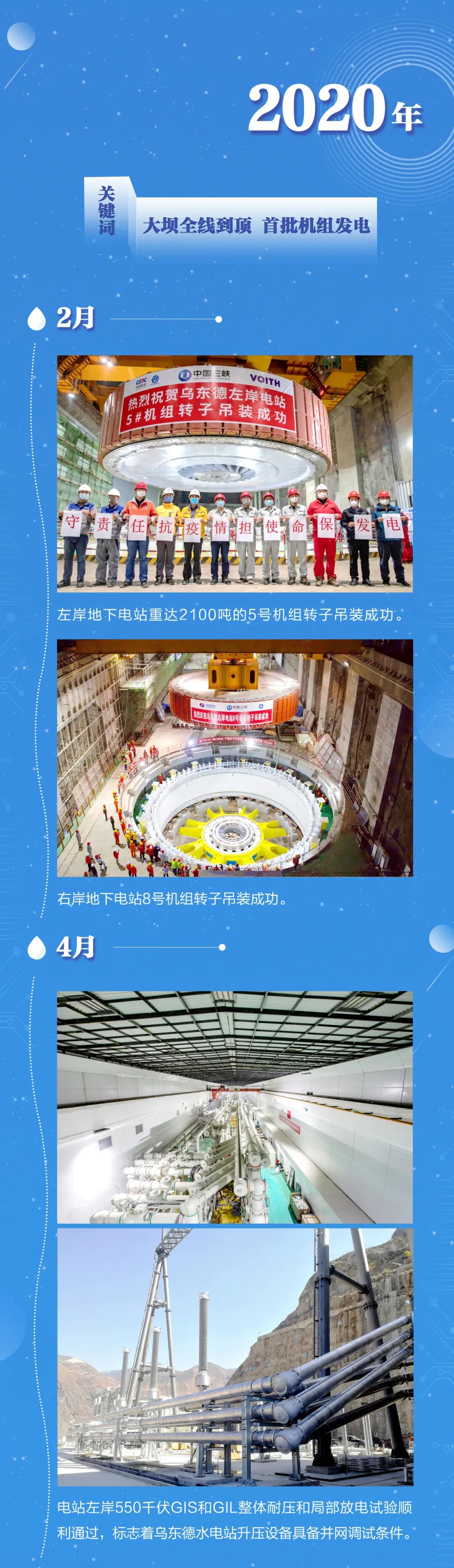 乌东德水电站首批机组投产发电仪式以视频方式举行,在北京设主会场,云南、四川等地设分会场,仪式上传达了习近平重要指示。