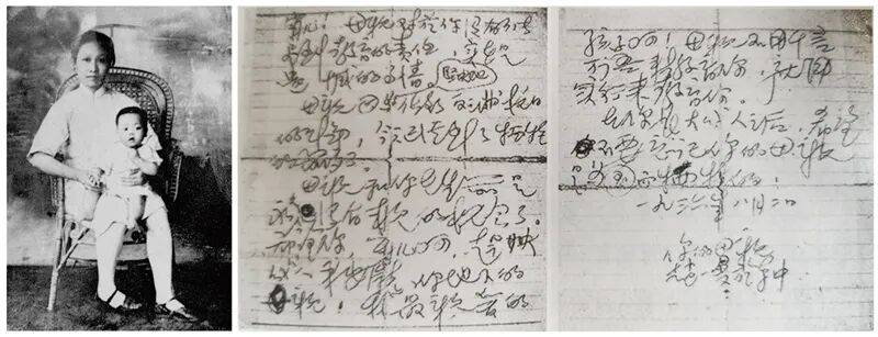 左图是赵一曼留给儿子的唯一一张合影。右图是赵一曼写给儿子的遗书。