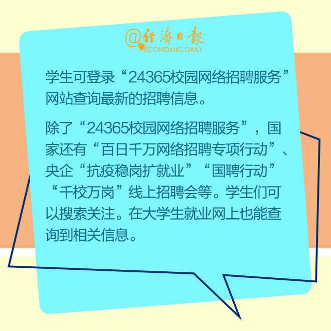 因为疫情,今年春招取消,但教育部联合多个招聘平台、地方推出了24365云招聘。截至6月21日,“24365”提供岗位信息1313万条,收到简历2919万人次。为提高应届高校毕业生就业服务精准性,聚焦重点行业、重点区域,加强与行业主管部门、地方政府合作,“24365”先后推出29个专场招聘,累计提供岗位492万个。