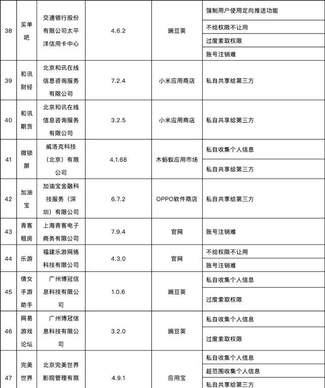 《关于侵害用户权益行为的APP通报》