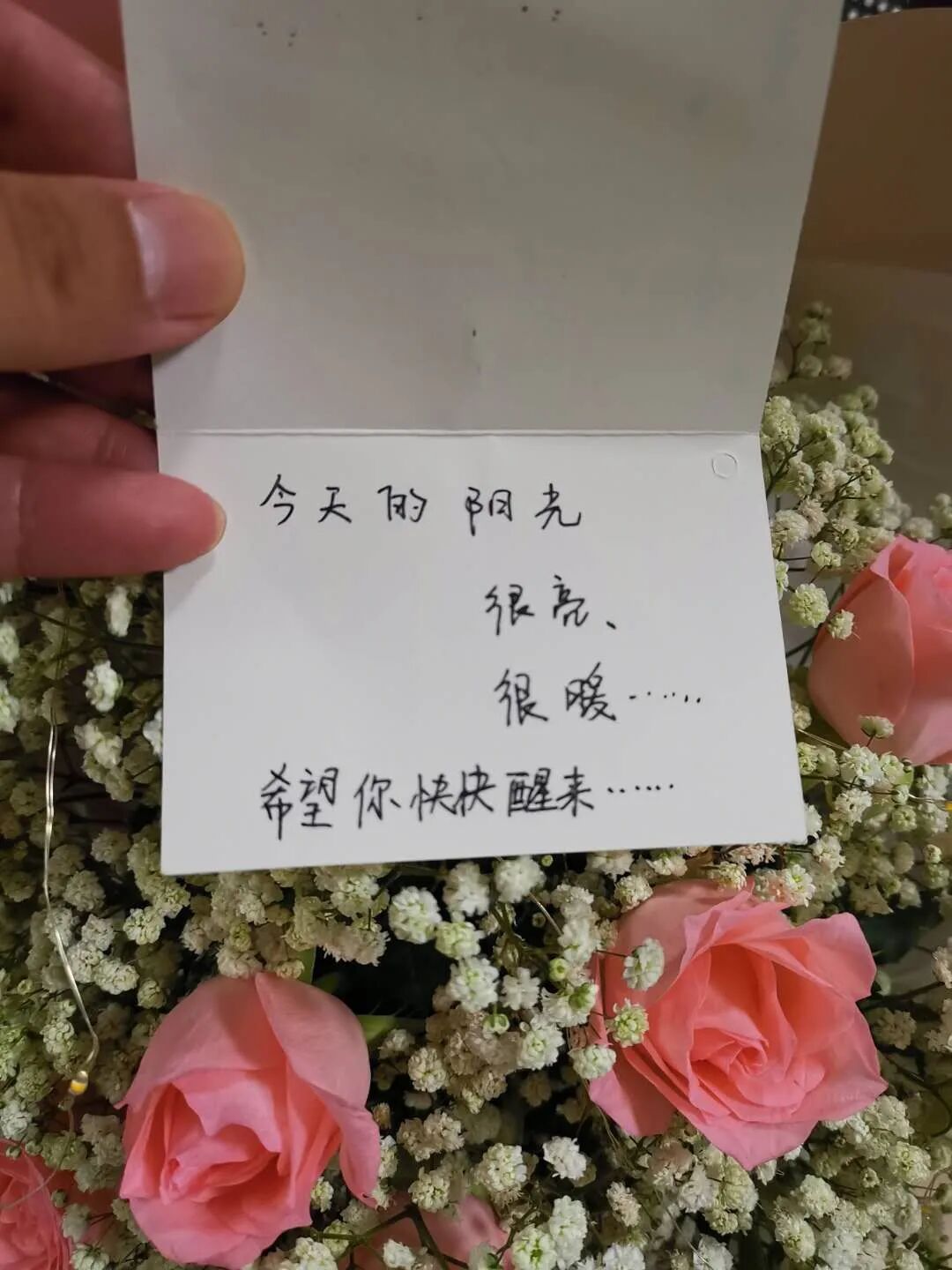 冒小驰在ICU的16天里,他的情况也牵动着许多人的心。当地的群众送来鲜花和卡片,希望他早日康复。