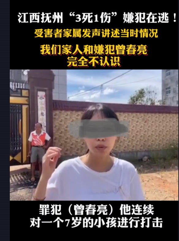 在五天前的人间惨剧中,嫌犯曾春亮锤杀了她年过六旬的父母。7岁的外甥也被用锤子反复砸成重伤。