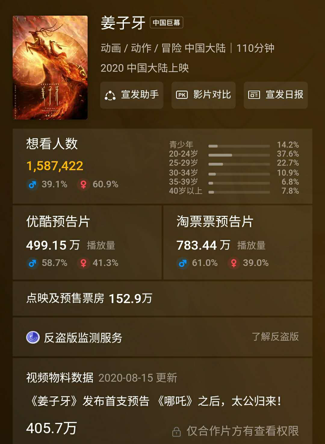 值得注意的是,《姜子牙》仍有保持高人气。灯塔专业版和猫眼专业版数据显示,该片想看人数累积达270万人。