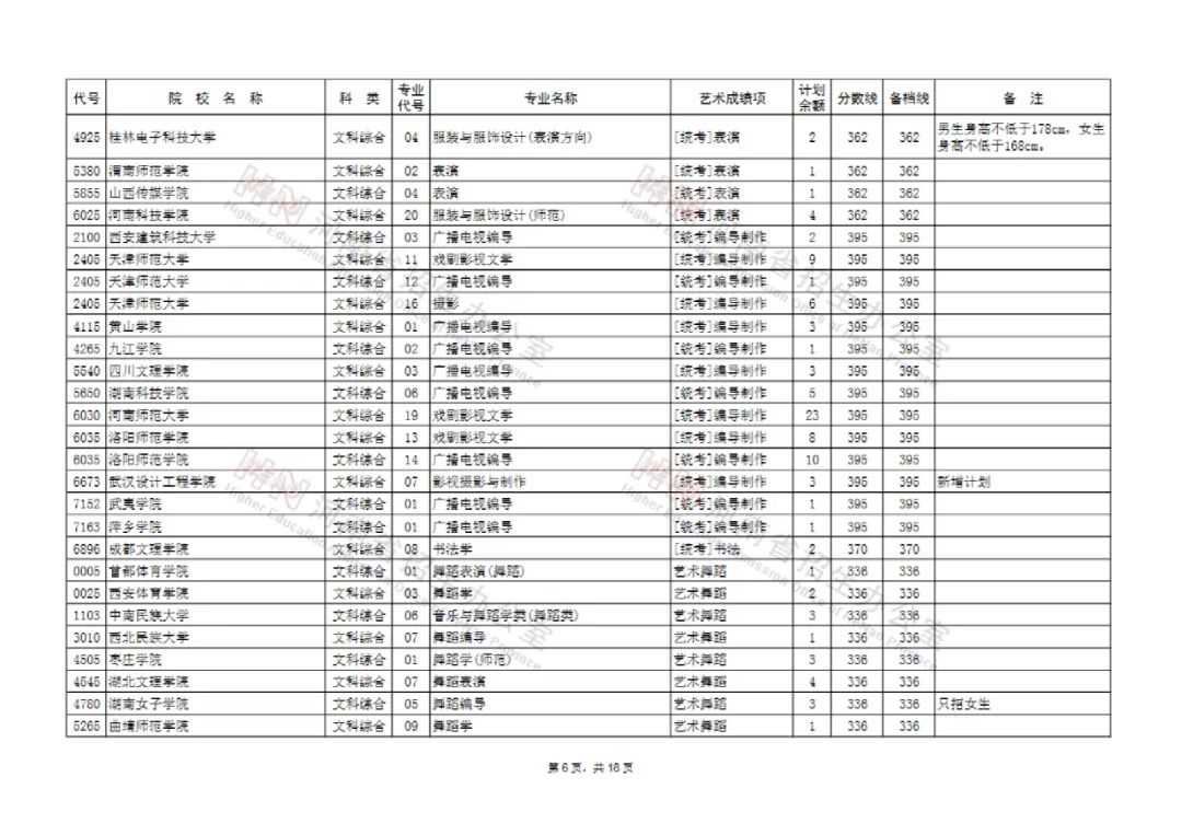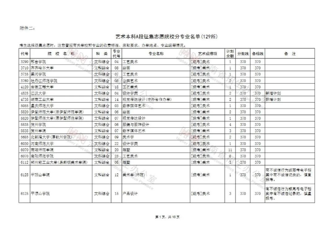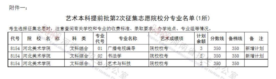 关于艺术类本科提前批和A段部分院校征集志愿的通知