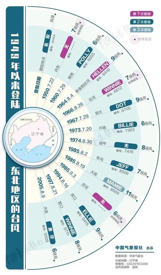 据统计,自1949年以来,登陆辽宁的“一手台风”仅一个,还要追溯到1964年,当年第10号台风“海伦”以热带风暴级别登陆辽宁新金。