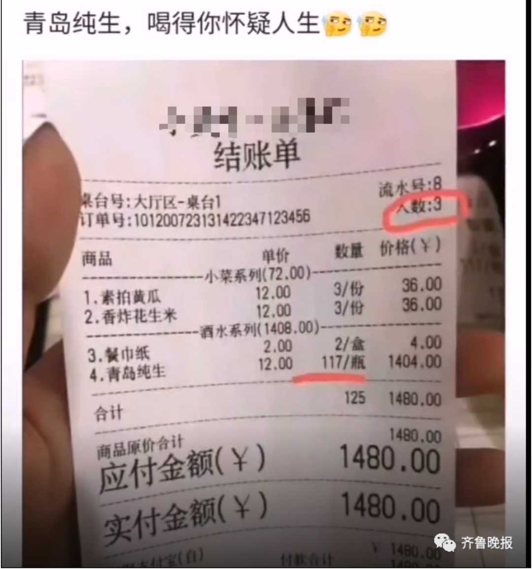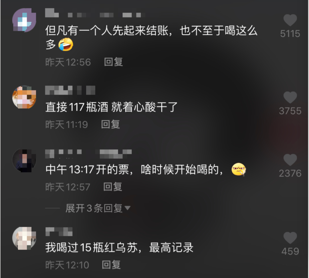 人均39瓶...光酒水就花费1404元。