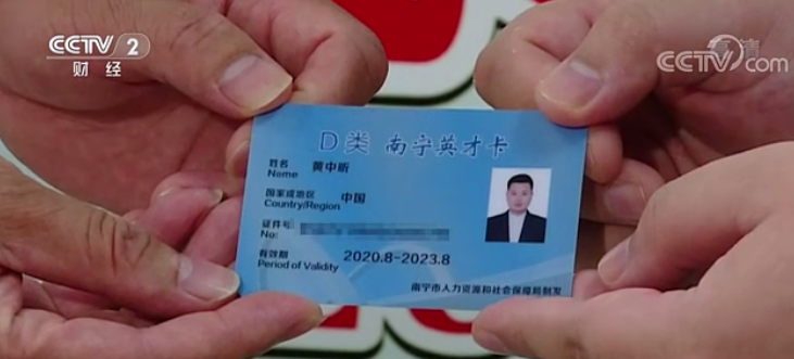 27日,黄中昕在南宁市高层次人才“一站式”服务中心领到了一张南宁英才卡。