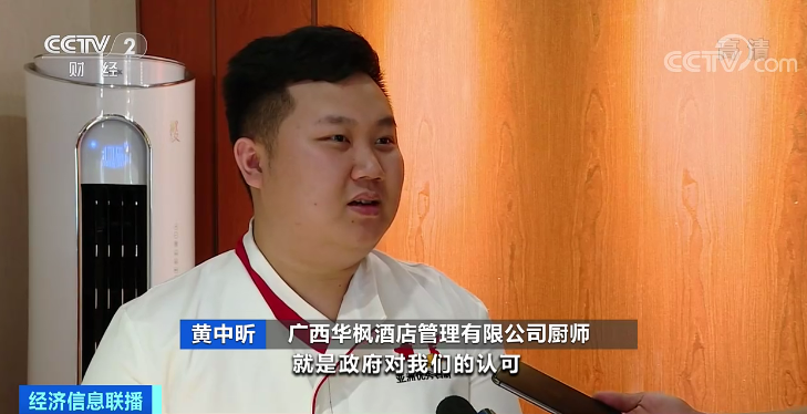广西华枫酒店管理有限公司厨师 黄中昕:政府对我们的认可,社会对我们的认可,我们家现在都特别以我为荣。