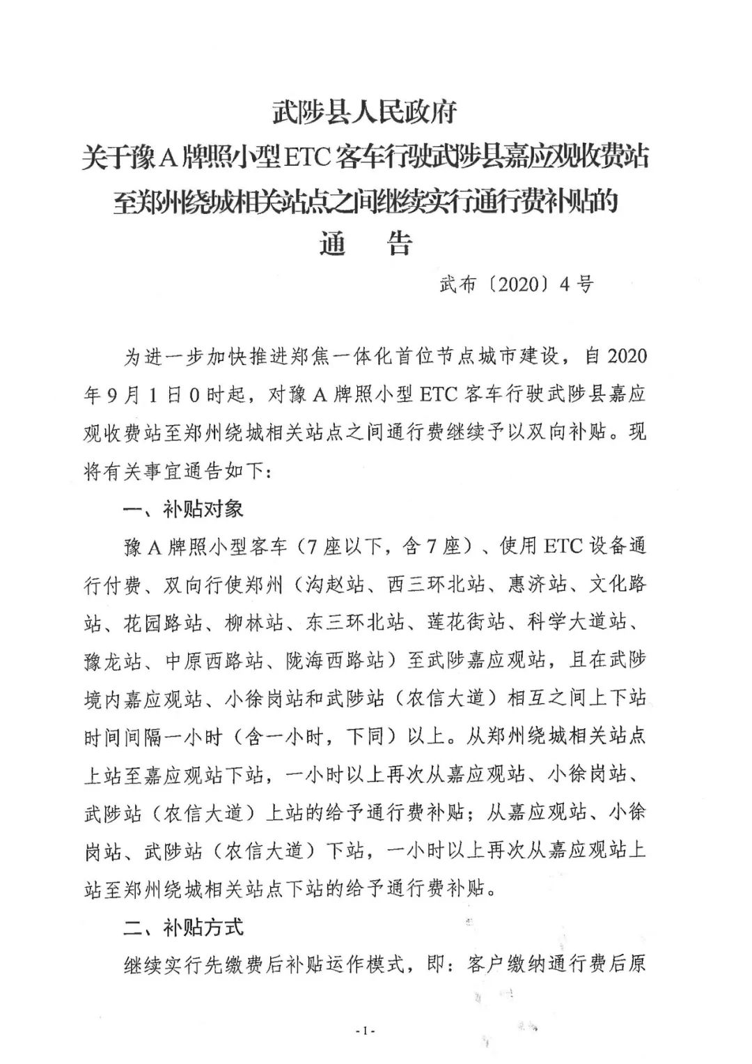 豫A牌照、安装ETC的一型小客车(7座以下,含7座),通行政府购买服务的高速路段,满足上述三个条件,可享受该段免收通行费。