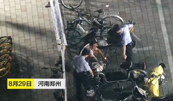8月29日4时16分,监看员发现该男子拿出随身携带的工具拆卸一辆黑色电动车的后座,迅速通过指挥台通知金水路分局交管巡防大队值班民警前往现场进行处置。4时20分许,巡逻三号民警郑帅带领辅警郑鹏超赶到现场将刚盗窃电瓶得手的粉衣男子控制,并移交给随后赶到的金水路分局治安管理服务大队一中队民警。